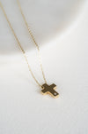 Con un peso de aproximadamente 3,0 gramos, esta cruz mide unos 10 mm. Fabricada en oro amarillo 18K.